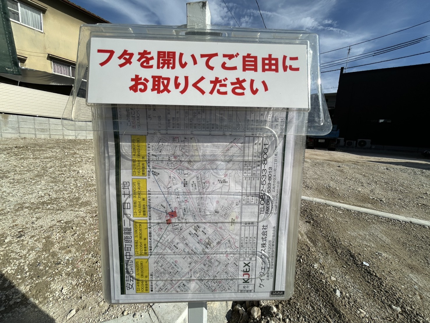 ケイジェックスでは、お取り扱いさせていただいている物件を定期的に巡回し、購入希望者または成約者が現地を見学された際に気持ちよくご覧いただくために、のぼり旗の取替や、ゴミ拾い等のチェックを行っております。
