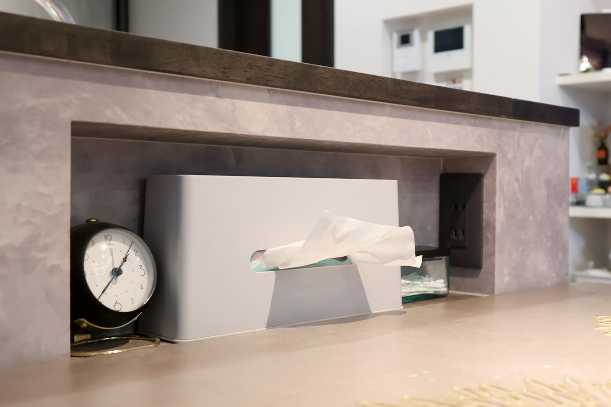 しかも、ニッチのくぼみとテーブルの高さを合わせたそう!